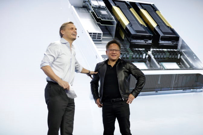 젠슨 황 CEO는 “이 서버들은 인텔리전트 농업, 인텔리전트 리테일에서 구동되는 서버들과 동일한 서버입니다. 소프트웨어 정의 기술이 곧 우리의 미래입니다. 이 서버들을 이용해 엣지에서 구동되는 이 저지연 서비스를 이제 엣지에서 제공할 수 있습니다”라고 말했습니다.
