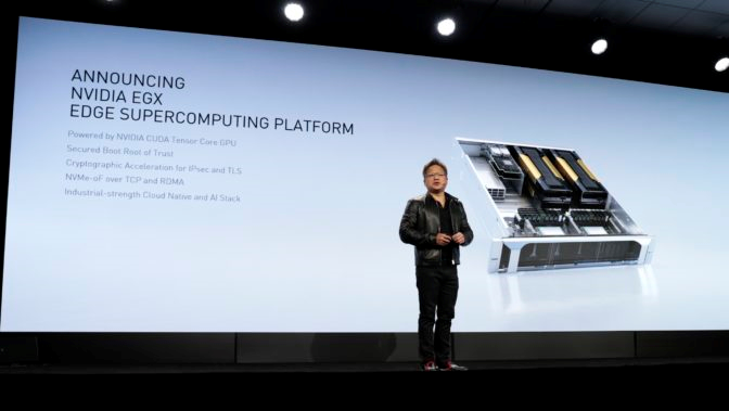 젠슨 황 CEO는 LA 컨벤션 센터에서 진행된 이 연설에서 “엣지 컴퓨팅에서도 스마트폰 혁명과 같은 혁명이 시작될 때가 됐습니다. 이런 애플리케이션을 지원할 수 있는 새로운 유형의 컴퓨터를 만들어야 합니다”라며, 이렇게 광범위하게 사용될 기술로 세계 경제의 효율성이 높아지면, “연간 수조 달러”에 달하는 새로운 기회가 창출될 것이라고 말했습니다.