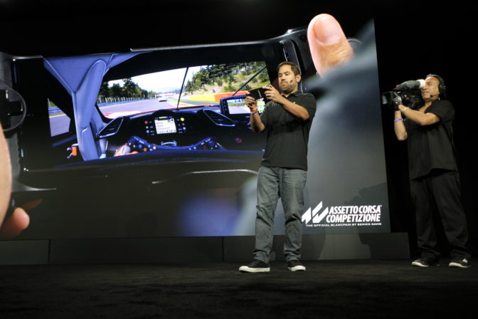 젠슨 황 CEO는 또 실시간 데모를 통해 지포스 나우에서 레이싱 게임 아세토 코르사 콤페티치오네(Assetto Corsa Competizione)을 5G 네트워크 스마트폰을 통해 플레이하는 게이머의 모습을 보여줬습니다. 카메라맨이 게이머의 어깨위에서 게임을 플레이하는 모습을 촬영했는데, 게이머는 고도의 화려한 그래픽이 구현되는 레이싱 게임을 레그(lag)없이 잘 진행했습니다.
