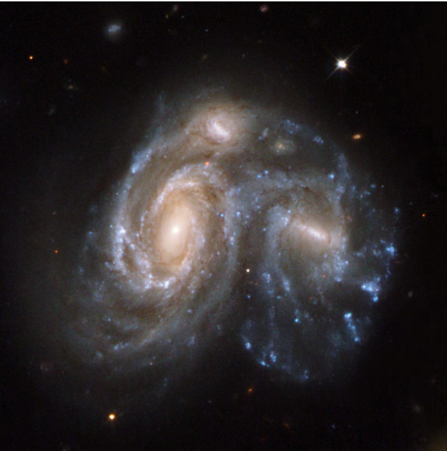허블우주망원경(Hubble Space Telescope, HST)이 촬영한 이 사진은 지구로부터 약 4억 5000만 광년 떨어진 곳에 있는 헤라클레스 자리에서 두 개의 나선 은하가 충돌하는 모습입니다. 이미지 출처: 미국항공우주국(NASA), 유럽우주국(ESA), 허블 헤리티지 팀(STScI / AURA)-ESA/ Hubble Collaboration, K. Noll (STScI). CC BY 4.0 사용 승인