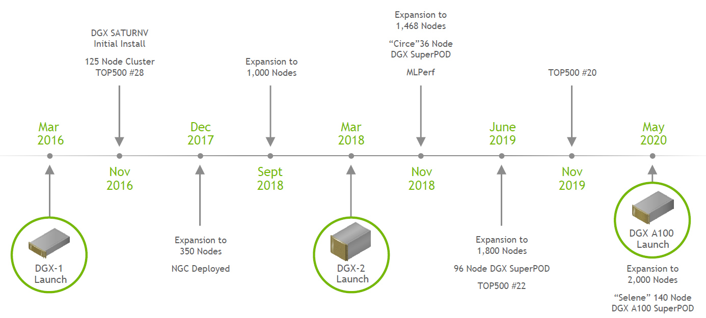엔비디아는 자율주행 자동차 컴퓨터 그래픽 알고리즘, AI 연구, 그리고 기타 새로운 AI 응용 프로그램 개발을 위해 2만 개가 넘는 GPU를 사내용으로 구축하여 사용하고 있습니다. 인공지능 벤치마크라고 할 수 있는 MLPerf를 기준으로 엔비디아는 자사 시스템 MLPerf 성능치를 공개한 많은 시스템 제조기업 중 많은 부분에서 최고 성능에 올라섰습니다.