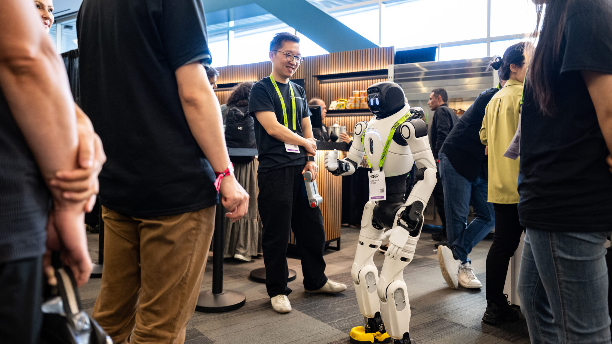 NVIDIA 하드웨어 및 소프트웨어 — NVIDIA Nemotron 오픈 모델, NVIDIA NIM 마이크로서비스 등 — 를 활용한 LiveX.ai의 완전 에이전틱 플랫폼 위에 구축된 18개의 TJ 아바타가 투명한 용기 안에서 대기하며 참석자들의 컨퍼런스 관련 질문과 물리적 AI, 가속 컴퓨팅, AI 에이전트의 최신 동향에 대한 질문에 답했습니다.