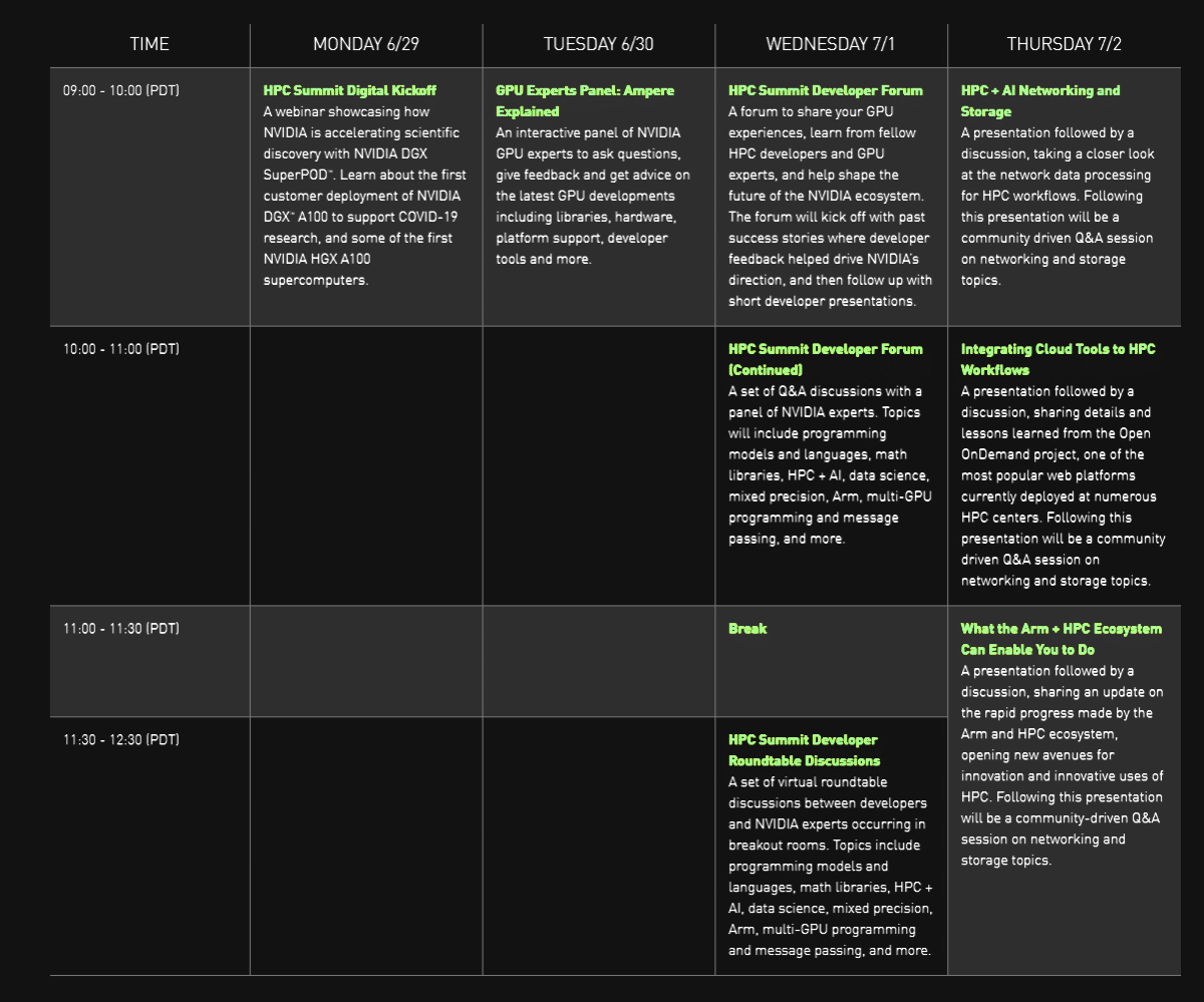 엔비디아가 주최하는 HPC 커뮤니티 포럼인 HPC 서밋 디지털은 6월 29일(현지시간)부터 진행된다. 쿠다(CUDA)의 개발자 겸 엔비디아 가속 컴퓨팅 그룹의 제너럴 매니저인 이안 버크(Ian Buck)와 멜라녹스(Mellanox)의 공동 설립자이자 엔비디아의 멜라녹스 네트워킹 사업부의 현재 CTO인 마이클 카겐(Michael Kagen)이 오프닝 세션에서 발표에 나섭니다.