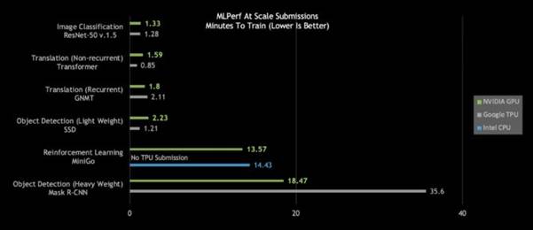 엔비디아의 인공지능(AI) 플랫폼은 훈련 성능 부문에서 8개의 기록을 세웠는데, 여기에는 전반적 성능 기록 3개, 엑셀러레이터 하나를 기준으로 한 성능 기록 5개가 해당됩니다.