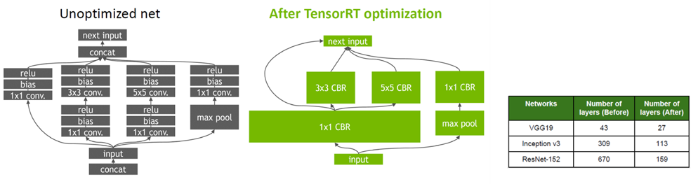 TensorRT는 NVIDIA platform에서 최적의 Inference 성능을 낼 수 있도록 Network compression, Network optimization 그리고 GPU 최적화 기술들을 대상 Deep Learning 모델에 자동으로 적용합니다. 관련하여, TensorRT에서 Inference 가속을 위해 사용하는 대표적인 기법들에 대하여 알아보도록 하겠습니다.