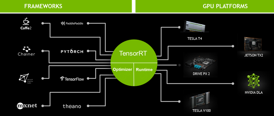 TensorRT는 학습된 Deep Learning 모델을 최적화하여 NVIDIA GPU 상에서의 Inference 속도를 수배 ~ 수십배 까지 향상시켜 Deep Learning 서비스 TCO (Total Cost of Ownership) 를 개선하는데 도움을 줄 수 있는 모델 최적화 엔진입니다. 본 포스트에서는 Deep Learning 기술의 제품 및 서비스 양산화에 관심 있는 개발자 및 엔지니어들을 위해 TensorRT를 간단히 소개하여, 향후 연재될 TensorRT 적용 방안에 대한 이해도를 높이는데 도움을 드리고자 합니다. TensorRT를 project에 적용하고자 하시거나, 적용 시 어려움이나 궁금하신 부분이 있으실 경우, NVIDIA의 Deep Learning 관련 전문가인 Solutions Architect 및 Data Scientist에게 언제든 연락주시기 바랍니다.