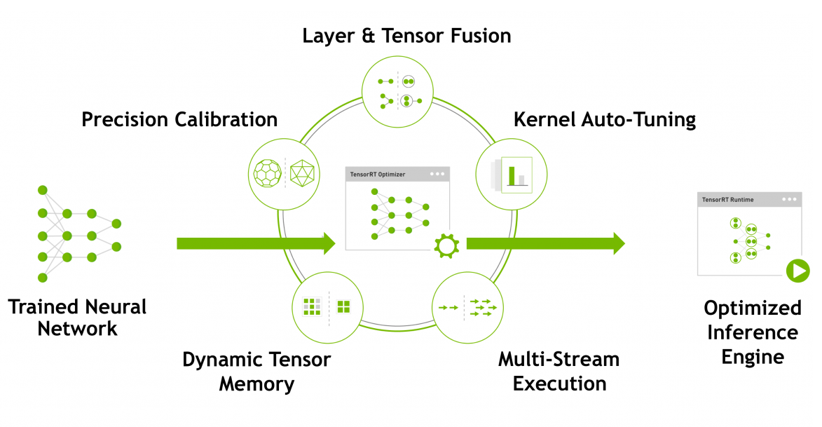 그 외에도 Memory management를 통하여 footprint를 줄여 재사용을 할 수 있도록 도와주는 Dynamic tensor memory 기능이 존재 하며, CUDA stream 기술을 이용하여 multiple input stream의 scheduling을 통해 병렬 효율을 극대화 할 수 있는 Multi-stream execution기능 또한 존재합니다.