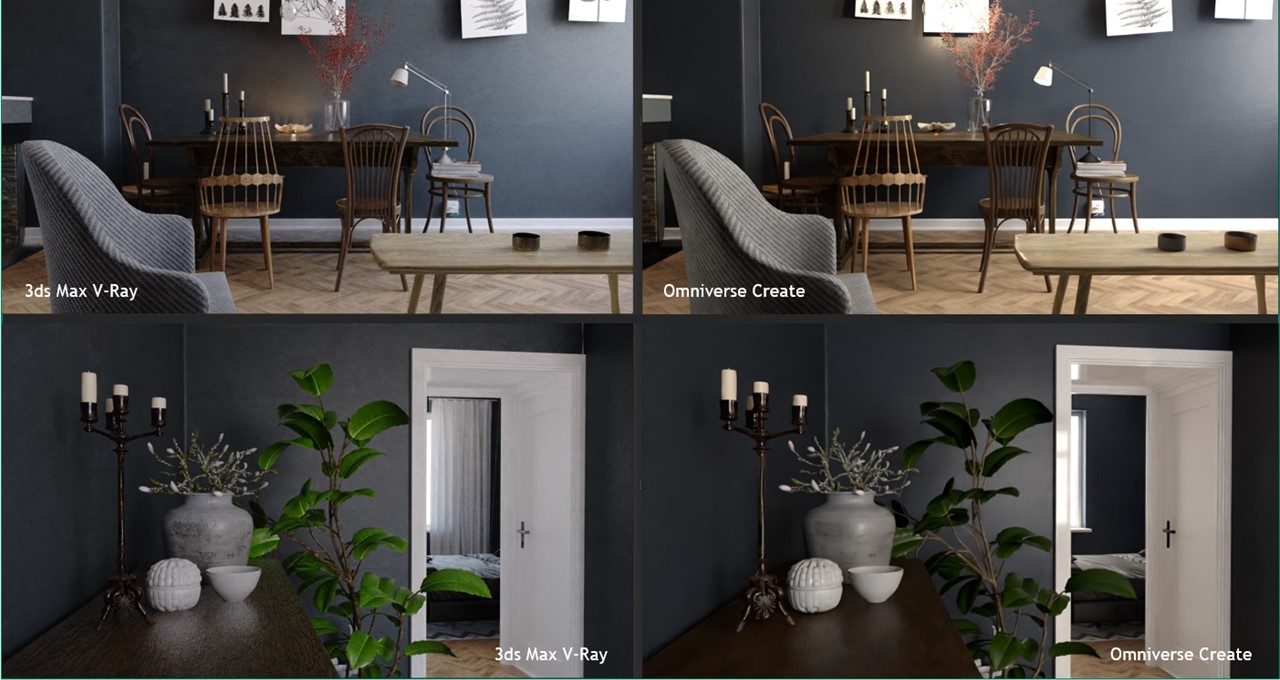 이제 Autodesk 3ds Max Connector에서 원격 협업 모듈 NVIDIA Omniverse Nucleus로 모델 데이터를 전송하고 실시간으로 동기화할 수 있게 됐는데요. 이를 통해 Autodesk 3ds Max에서 복잡한 모델을 디자인하고 렌더링하는 동시에 NVIDIA Omniverse RTX Renderer가 제공하는 다중 GPU의 확장성도 누릴 수 있습니다. 건축가용 NVIDIA Omniverse View와 디자이너용 NVIDIA Omniverse Create 애플리케이션에서도 Autodesk 3ds Max 애플리케이션과 실시간으로 상호작용하며 포토리얼리스틱 이미지와 고화질 디자인 작업을 진행할 수도 있습니다.