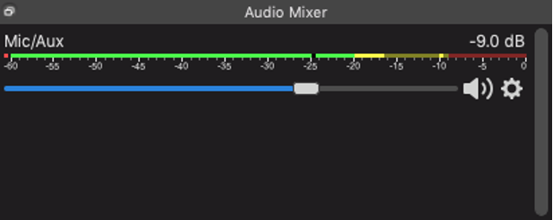8. 이제 마이크를 테스트해보세요. 말을 하며 게인 슬라이더(gain slider)를 조정하면서 미터기가 노란색 영역 내로 들어오게 합니다(-12db이 최적입니다).