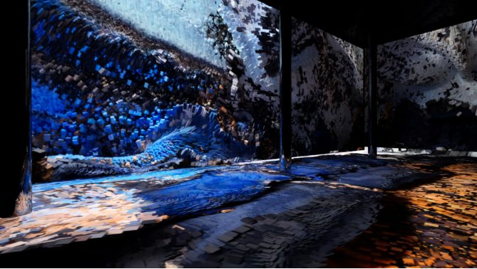 뉴미디어 아트란 첨단 기술을 사용해 작가의 상상력을 작품에 실현한 예술을 말하는데요, ‘기계가 만들어 내는 환상의 세계’를 뜻하는 뉴미디어 아트 작품 ‘머신 할루시네이션(Machine Hallucination)’이 뉴욕 맨해튼의 랜드마크인 첼시 마켓의 보일러 룸에서 첫 선을 보였습니다. 전시장은6000 ft2 (약 557 m2)의 넓은 공간으로 첼시 마켓 중앙 홀 아래층에 있습니다.