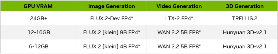 📝 블랙 포레스트 랩스 플럭스.2 버전: 플럭스.2 [klein]은 이미지 생성과 편집을 모두 지원하는 초고속 콤팩트 모델 세트입니다. 최상급 이미지 품질을 제공하며, NVFP4와 NVFP8 가속을 통해 최대 2.5배 빠른 속도를 구현하죠. 다양한 RTX GPU 제품에서 높은 성능으로도 구동됩니다.