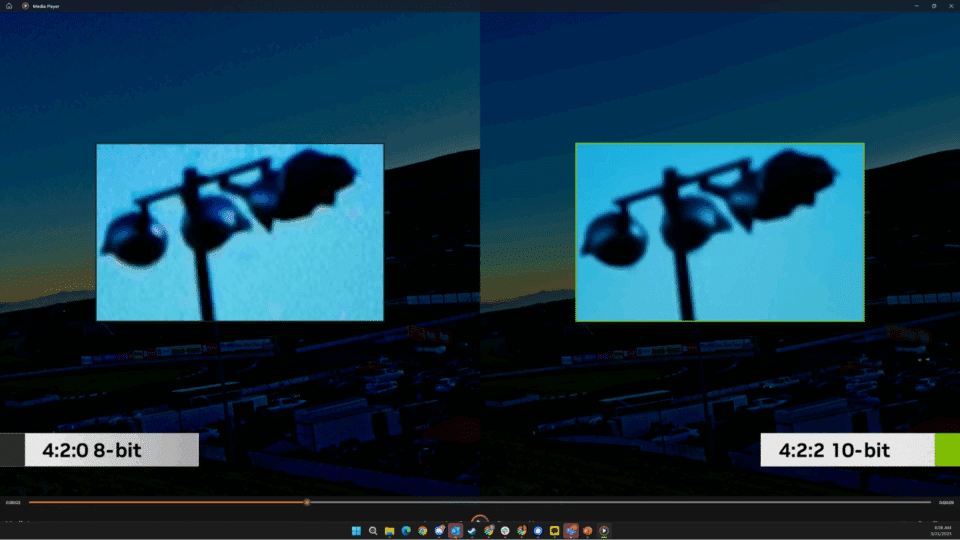 4:2:2 지원과 NVIDIA 하드웨어가 결합되면서 창의적인 작업의 폭이 더욱 넓어집니다. 10비트 4:2:2는 8비트 4:2:0보다 더 많은 색상 정보를 유지하여, 동영상 편집자에게 더욱 정확한 색상 표현과 탁월한 색상 그레이딩 결과를 제공합니다.