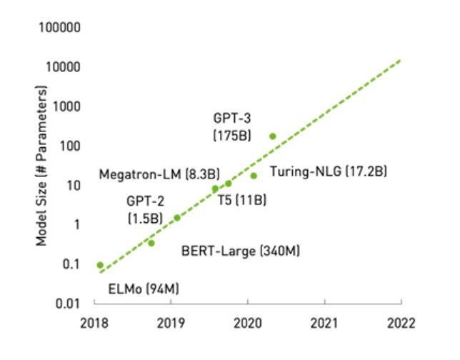 이번 포스팅에서는 언어 모델들을 깊이 들여다보는 대신 이러한 거대 모델들의 비용 효율적 추론에 대해 살펴보겠습니다. GPU가 이 워크로드에 적합한 컴퓨팅 리소스인 것은 당연한 얘기지만, 모델이 너무 거대한 경우 단일 GPU에 맞지 않기도 합니다. 다중 GPU, 다중 노드 시스템 상에서 거대 모델을 훈련하는 프레임워크와 관련한 더 자세한 정보는 ‘자연어 처리 혁신 모델훈련 프레임워크 NVIDIA Megatron 완전 해부’ 블로그에서 확인하세요.
