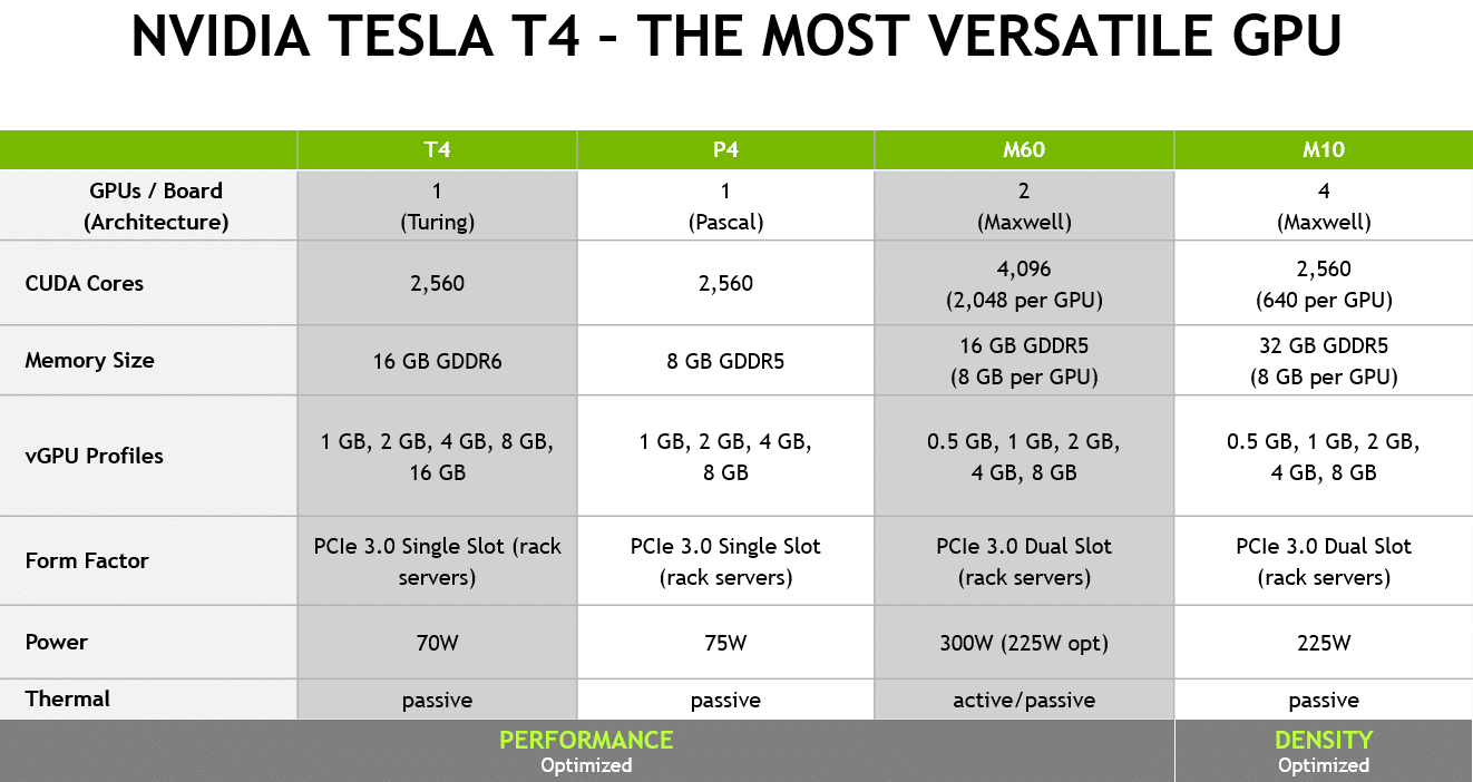 엔비디아 테슬라(Tesla) T4 GPU는 이제 엔비디아 가상 GPU(vGPU) 소프트웨어로 가상화 워크로드를 지원합니다.