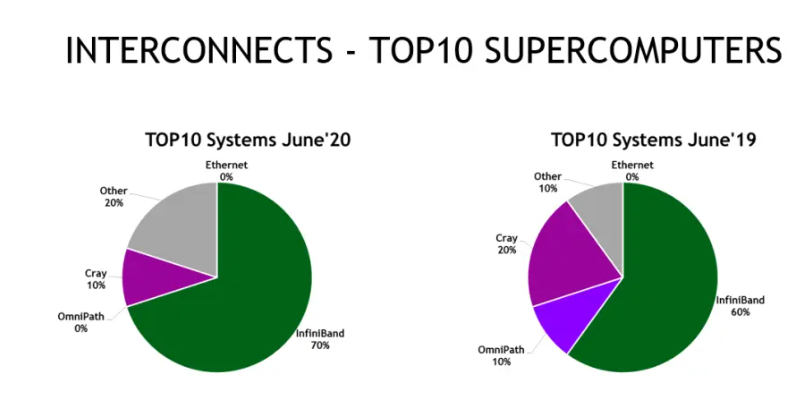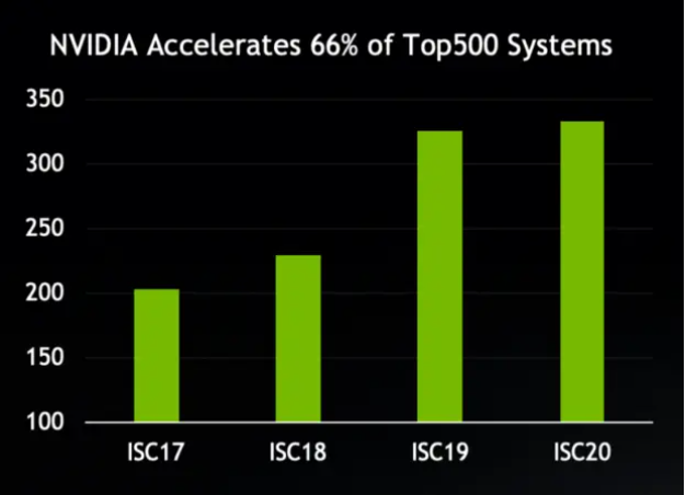멜라녹스 인수 이후 엔비디아는 전세계 상위 500대 슈퍼컴퓨터 중 약 3분의 2에 해당하는 333개를 지원하고 있습니다. 또한, 인피니밴드 시스템을 채택한 슈퍼컴퓨터 중 약 74%가 멜라녹스 HDR 200G 인피니밴드를 도입했습니다. HDR 인피니밴드를 사용하는 전세계 상위 500대 슈퍼컴퓨터의 수는 2019년 11월 이후 거의 두 배가 증가했습니다.