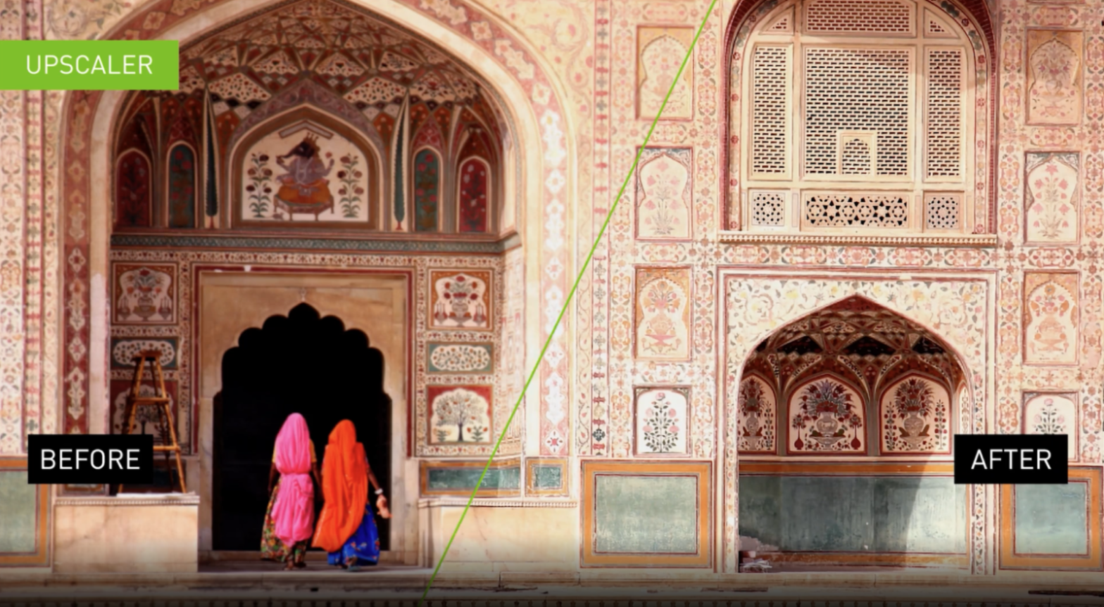 슈퍼 해상도(Figure 1)는 주어진 인풋 이미지의 해상도와 텍스처를 개선해 우수한 품질의 이미지를 생성합니다. 전체적 개선을 달성하면서 콘텐츠는 보존하죠. 이 시각 효과는 H.264와 같은 무손실 압축 데이터에 사용할 때 가장 좋습니다. 이 기능으로 미디어를 1.33배와 1.5배, 2배, 3배, 4배까지 확장할 수 있습니다.