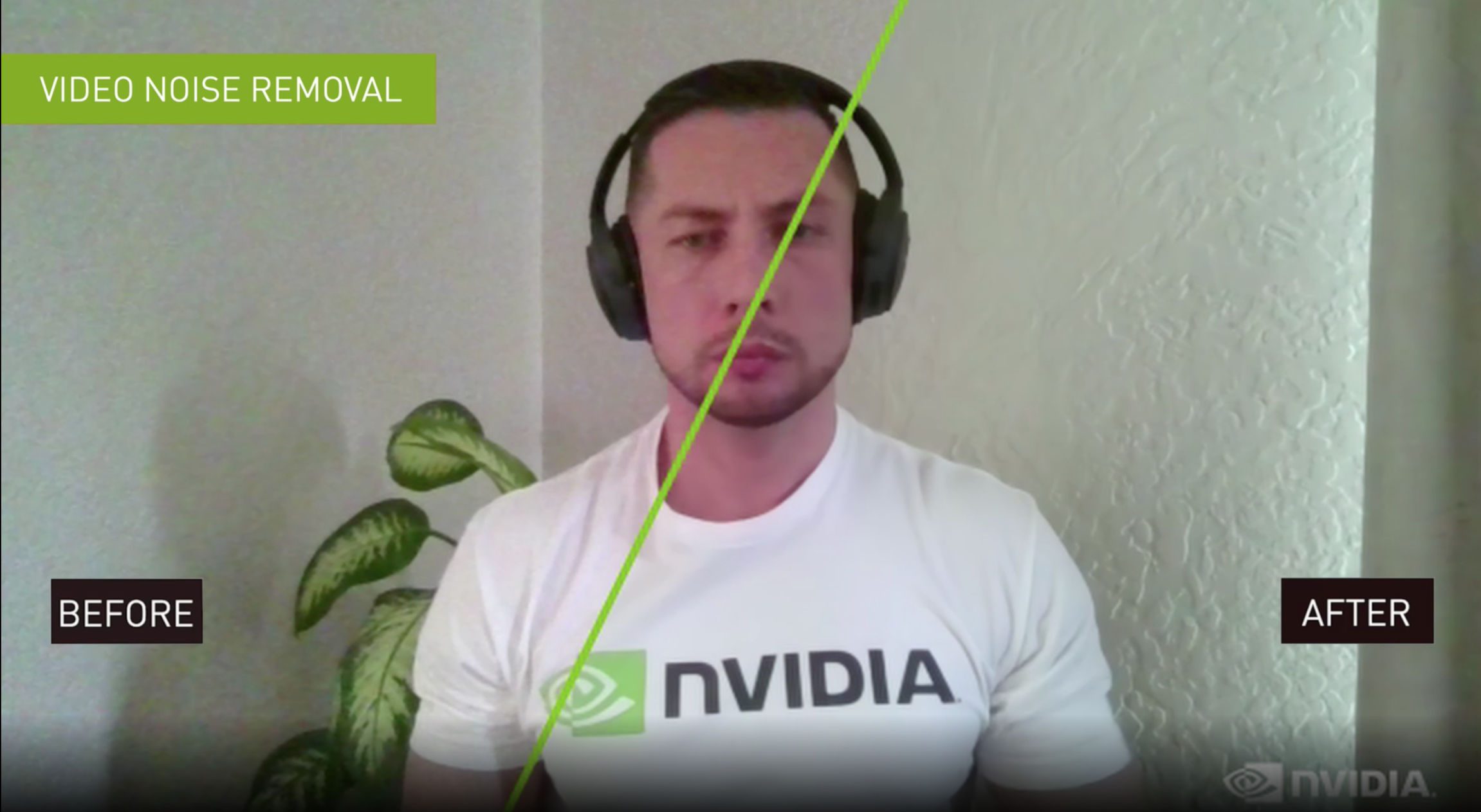 Maxine Video Effects SDK의 비디오 노이즈 제거(The Video Noise Removal, Figure 3) 기능을 사용하면 웹캠 스트림의 노이즈를 제거하고 디테일을 보존해 사용자 경험을 개선할 수 있습니다.