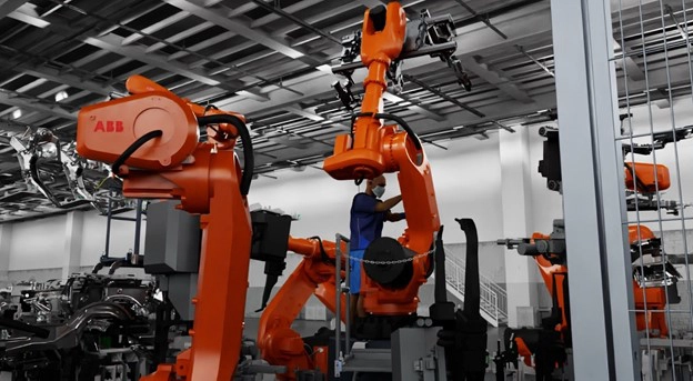 자동차 조립 공장 안으로 들어가볼까요? 너트를 볼트에 고정하는 작업자들을 볼 수 있습니다. 에어 툴의 윙윙 거리는 소리가 들립니다. 라인을 따라 이동하는 깨끗한 차체들과 부품을 가지고 구르며 움직이는 로봇이 보이죠.