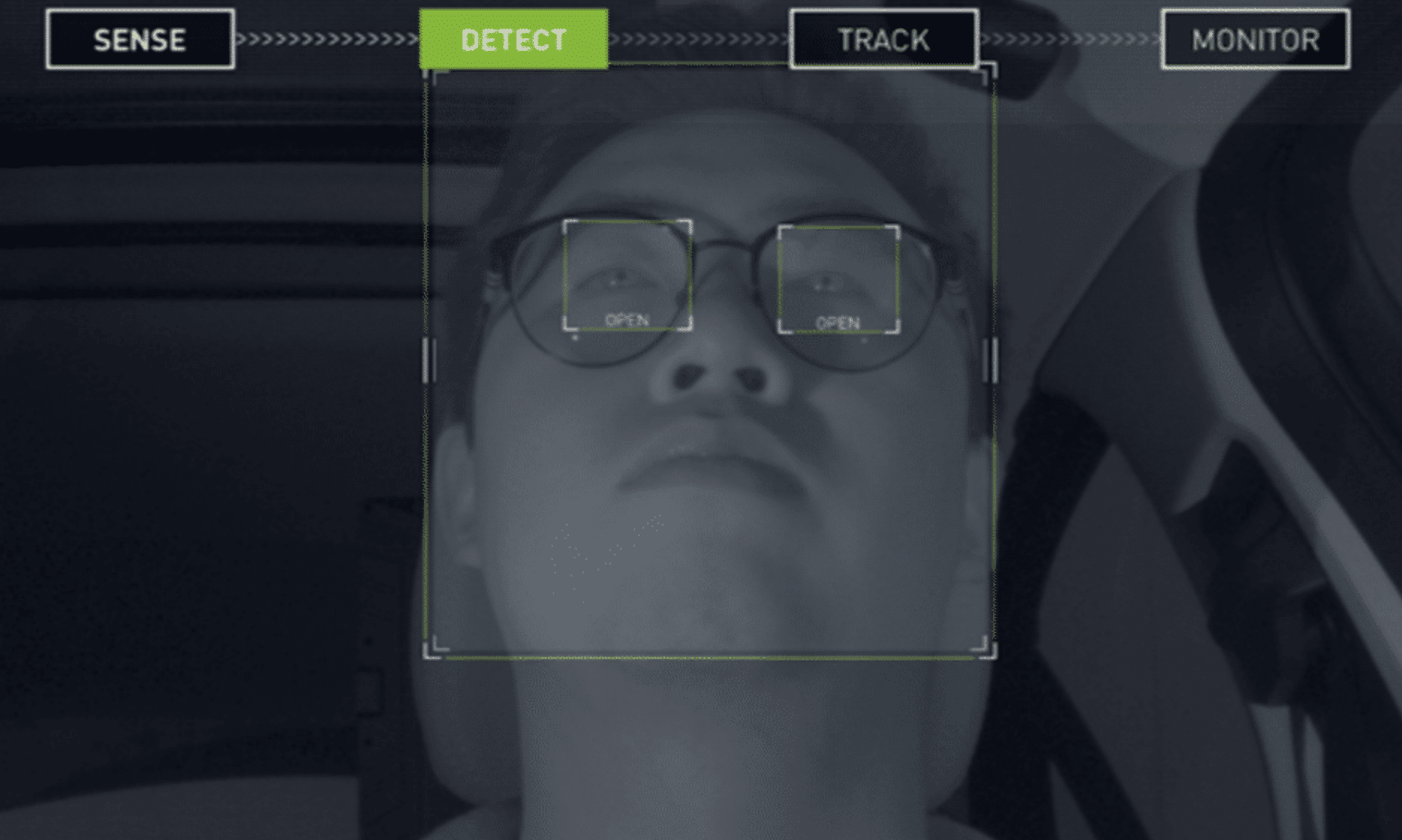 AI 기반 운전자 모니터링 기능은 차내 카메라를 통해 운전자의 행동, 머리 위치, 표정 등을 트래킹 해 운전자가 운전에 집중하고 있는지, 졸리거나 주의가 흐트러지지는 않았는지 분석합니다. 그 다음 운전자에게 위험 상황을 알려 운전자가 운전에 집중할 수 있도록 돕습니다.